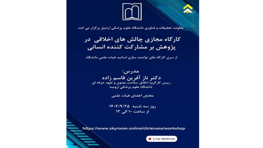 برگزاری کارگاه مجازی چالش‌های اخلاقی در پژوهش بر مشارکت کننده انسانی